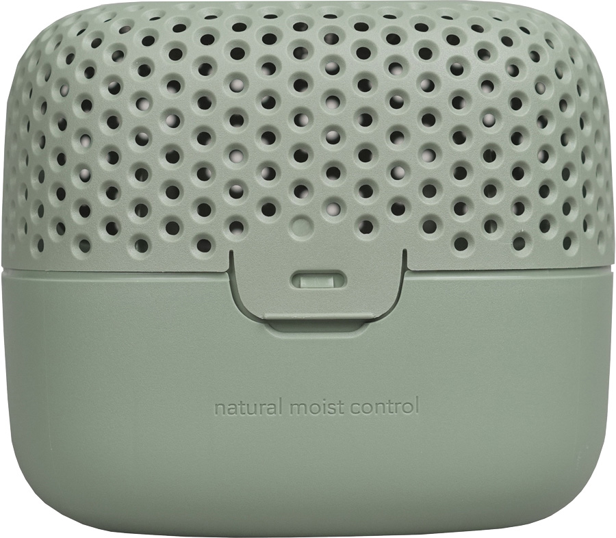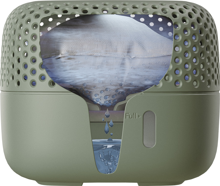 Preview: Draufsicht eines waldgrünen Luftentfeuchters, der auf einem Tisch steht